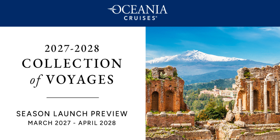 Oceania Cruises' expansive new 2027-2028 Collection of Voyages invites you to explore captivating destinations the world over in the comfort of their small, luxurious ships. From the pristine beaches of the Caribbean to their first quiet season in the Mediterranean and from the untamed wilderness of Alaska to the exotic treasures of Asia, each itinerary has been carefully designed to immerse you in the character and authenticity of every place you visit.